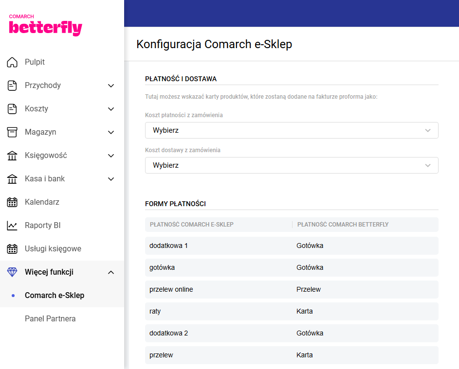 Zamówienie Comarch e-Sklep w systemie Comarch Betterfly