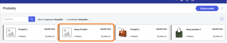 3. Po przełączeniu widoku na kafelkowy towary bez zdjęcia będą prezentować się w następujący sposób: