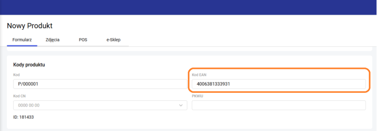 4. W polu o nazwie Kod EAN dodaj kod EAN dla swojego produktu: