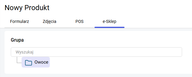 Aby wysłać produkt do e-Sklepu należy określić przynajmniej grupę oraz cenę sprzedaży. Pozostałe informacje nie są wymagane, jednak mogą ułatwić wyszukiwanie towaru w e-Sklepie.
