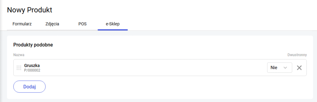 - jeśli zostanie wybrana opcja Dwustronny: nie – relacja zostanie zapisana tylko na karcie produktu, który definiujemy;